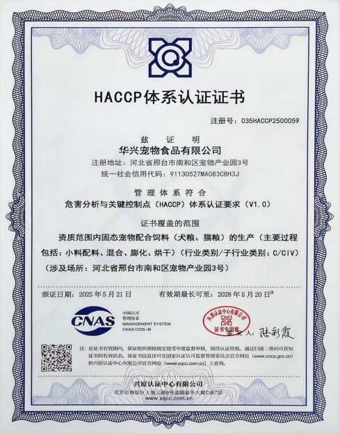 公司通過HACCP體系認證